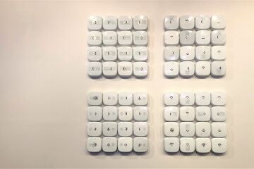 Code by Donna Marcus is a striking installation, assembled into a modernist grid with...